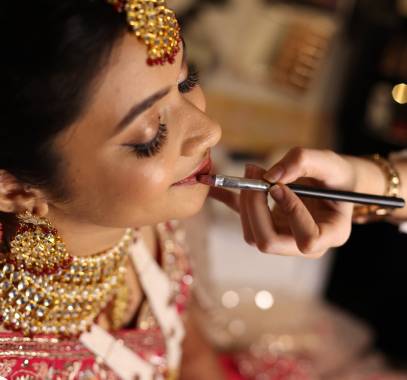Professional makeup and hairstyling services for the bride, groom, and close family. Includes saree/dress draping and provision of traditional/jewelry sets as required.